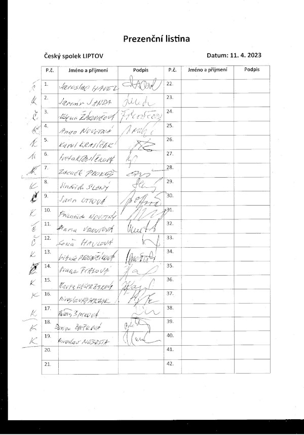 Zápis z členské schůze Českého spolku Liptov 11.04. 2023