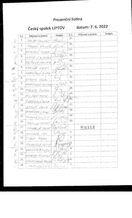 Zápis z členské schůze ČS Liptov 07.06.2022